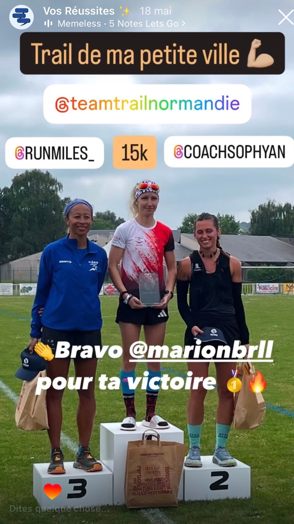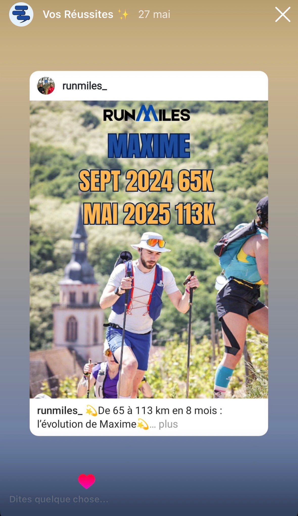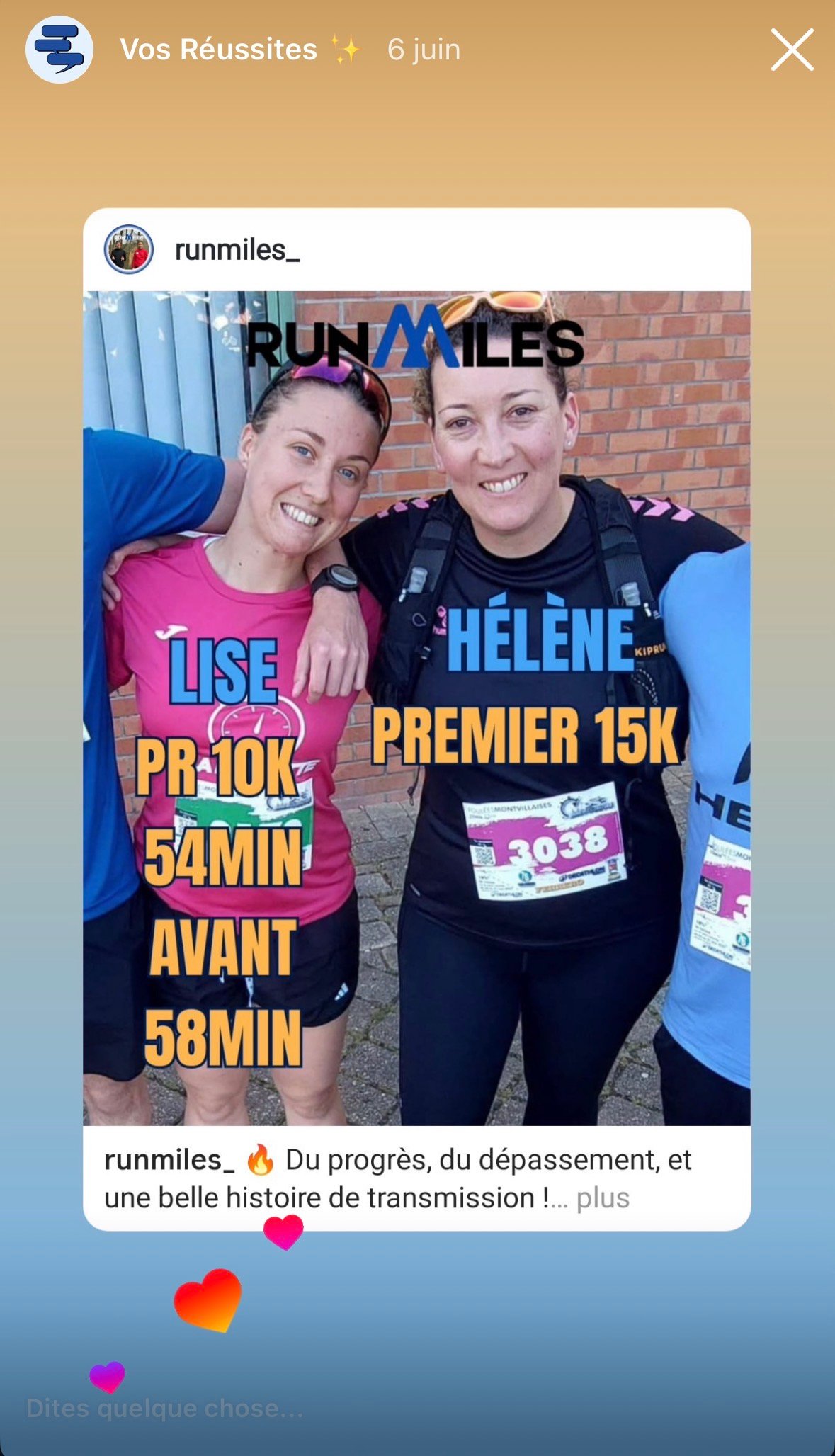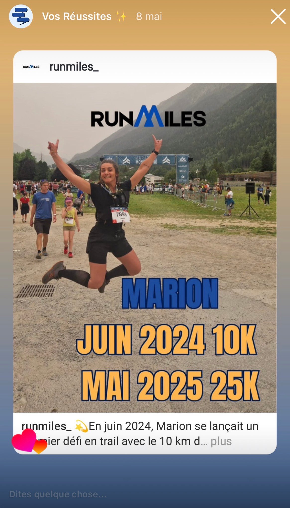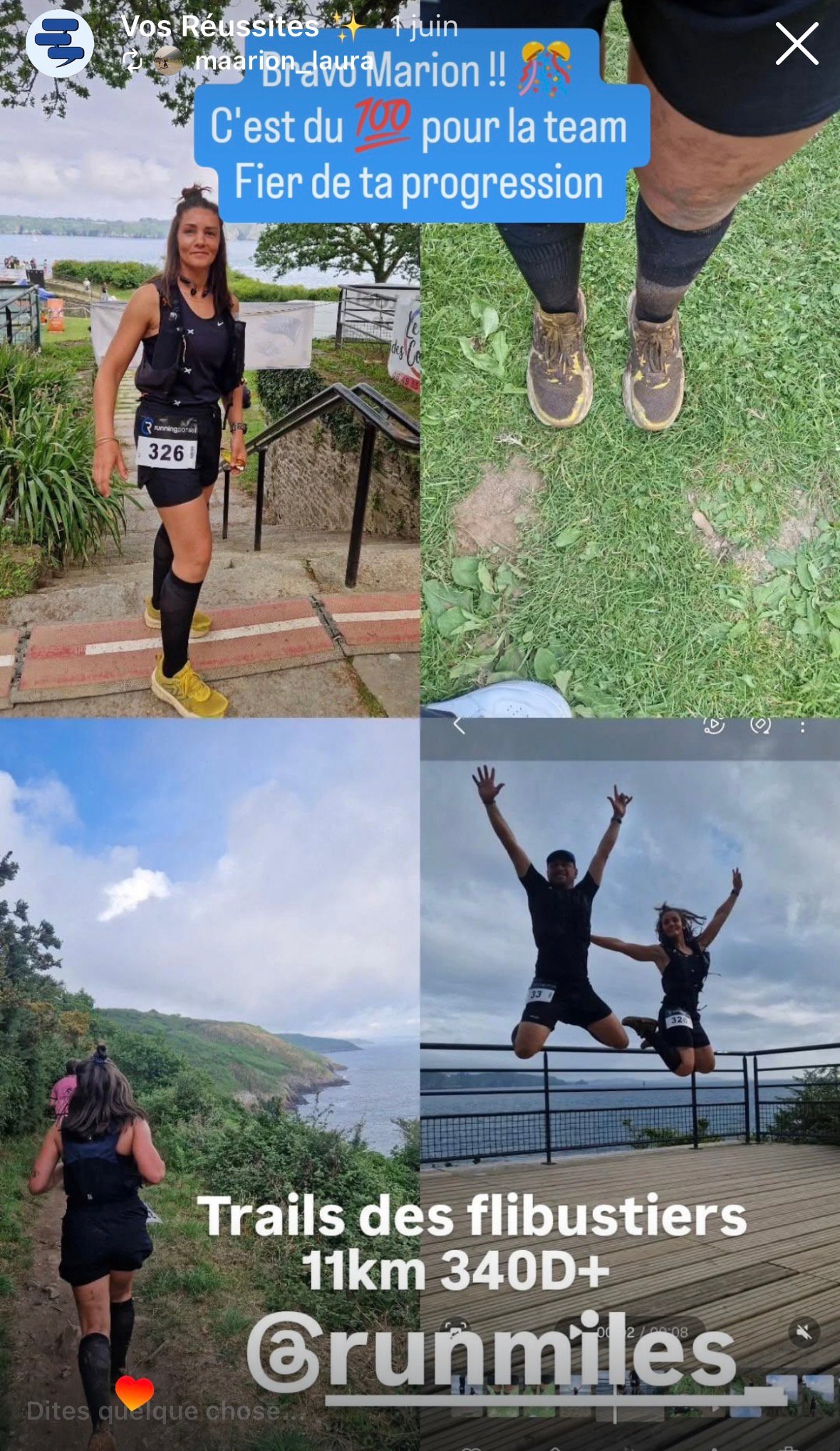 la victoire n’est jamais un hasard. Elle est le résultat d’un engagement, d’un accompagnement, et d’une équipe qui croit en toi. Ici, tu verras des parcours réels, des progrès tangibles, des victoires personnelles. Motivation, entraide, résilience : voilà l’ADN de la famille Runmiles.